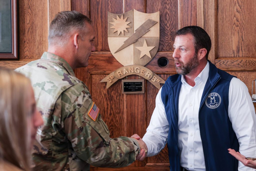Picture #5: Senator Mullin with CDT Graham Curtsinger. (U.S. Army photo by Sgt. 1st Class Alan Brutus)