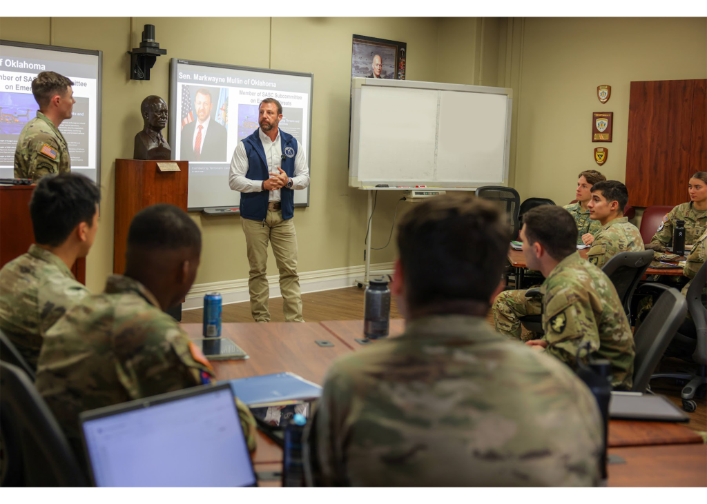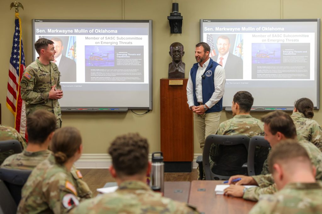 Washington, D.C. – On Friday, U.S. Senator Markwayne Mullin (R-OK) visited the United States Military Academy at West Point where he met with Superintendent Lieutenant General Steven Gilland, toured various facilities, ate lunch with Oklahoma Cadets, and spoke to class SS465 – Terrorism: New Challenges.